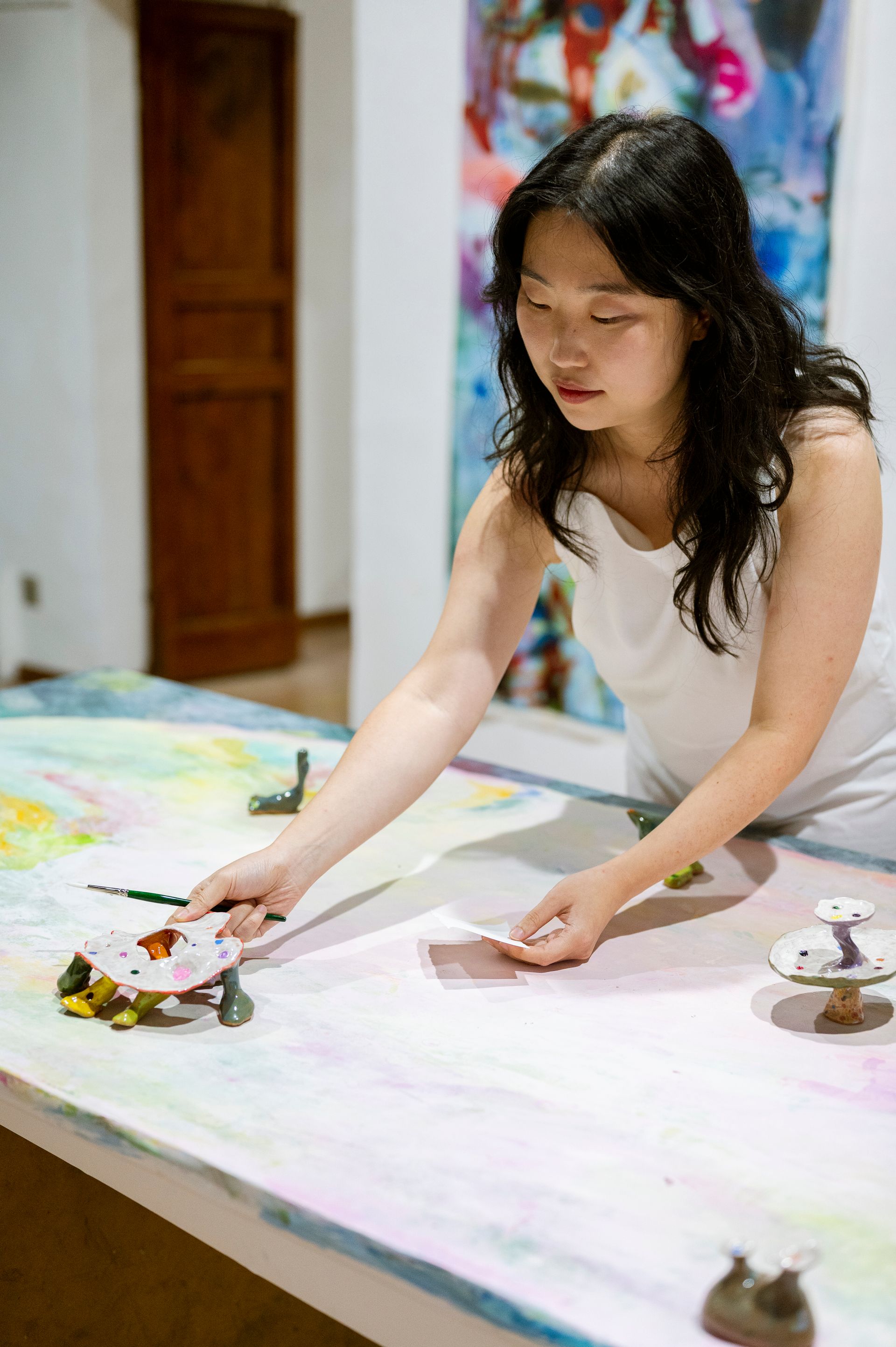 My work changed there. With no guilt, I abandoned figuration and began a new abstract series called The Palette’s Dream. I made a funky watercolor palette from ceramics and invited people to paint during open studios. It was my baby attempt at sculpture and I really wanted people to try watercolor.